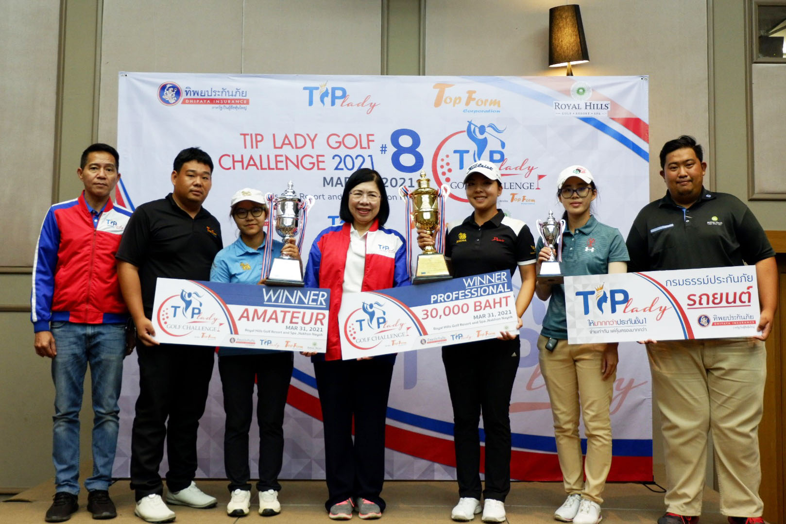 คุณดรรชนีย์ ศรีอนันต์รักษา รองกรรมการผู้จัดการใหญ่ ทิพยประกันภัย มอบถ้วยรางวัลเกียรติยศ พร้อมรางวัลเงินสด รวมกว่า 250,000 บาท และกรมธรรม์ประกันภัยรถยนต์ TIP Lady ที่ให้ความคุ้มครองมากกว่าประกันชั้น 1 ให้แก่ผู้ชนะเลิศในการแข่งขันกอล์ฟสำหรับผู้หญิง รายการ “TIP Lady Golf Challenge ครั้งที่ 8” นอกจากนี้ยังมอบรางวัลพิเศษ ให้กับนักกอล์ฟสตรีอีกมากมาย