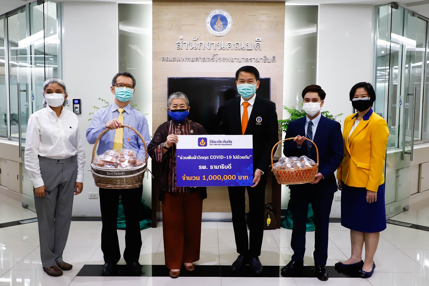 ศ.นพ.ปิยะมิตร ศรีธรา คณบดีคณะแพทยศาสตร์โรงพยาบาลรามาธิบดี รับมอบเงินจำนวน 1,000,000 บาท จากบริษัท วิริยะประกันภัยจำกัด (มหาชน) โดยมี คุณกานดา วัฒนายิ่งสมสุข ที่ปรึกษาฝ่ายการตลาดผู้ผลิตและผู้แทนจำหน่ายรถยนต์ พร้อมทั้งผู้บริหารระดับสูง เป็นผู้แทนมอบ เพื่อสนับสนุนโรงพยาบาลรามาธิบดีร่วมกันฟันฝ่าวิกฤตไวรัส COVID-19 ไปด้วยกัน