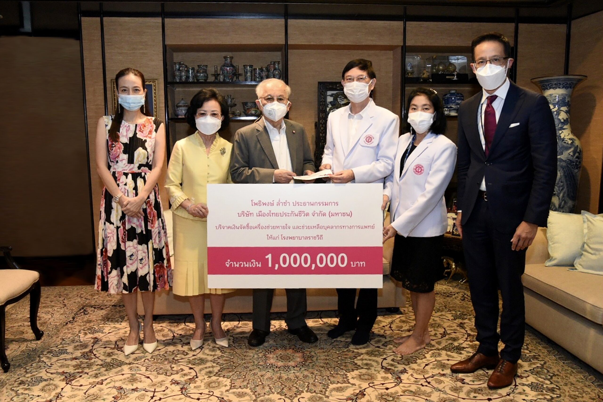 บริษัท เมืองไทยประกันชีวิต จำกัด (มหาชน) โดยนายโพธิพงษ์ ล่ำซำ ประธานกรรมการ นางยุพา ล่ำซำ นายสาระ ล่ำซำ ประธานเจ้าหน้าที่บริหาร พร้อมด้วยนางนวลพรรณ ล่ำซำ ร่วมบริจาคเงิน 1,000,000 บาท ให้กับโรงพยาบาลราชวิถี โดยมี นายแพทย์สมเกียรติ ลลิตวงศา ผู้อำนวยการ โรงพยาบาลราชวิถี แพทย์หญิงสุมิตษิ์ตรา ปิยะณัตดิ์พูล ผู้ช่วยผู้อำนวยการ ด้านกิจกรรมพิเศษ โรงพยาบาลราชวิถี รับมอบ เพื่อนำเงินดังกล่าวใช้ในการจัดซื้อเครื่องช่วยหายใจ ยี่ห้อ Viasys รุ่น Vela และช่วยเหลือบุคลากรทางการแพทย์ ในสถานการณ์โรคติดเชื้อไวรัสโคโรนา 2019 (COVID-19)