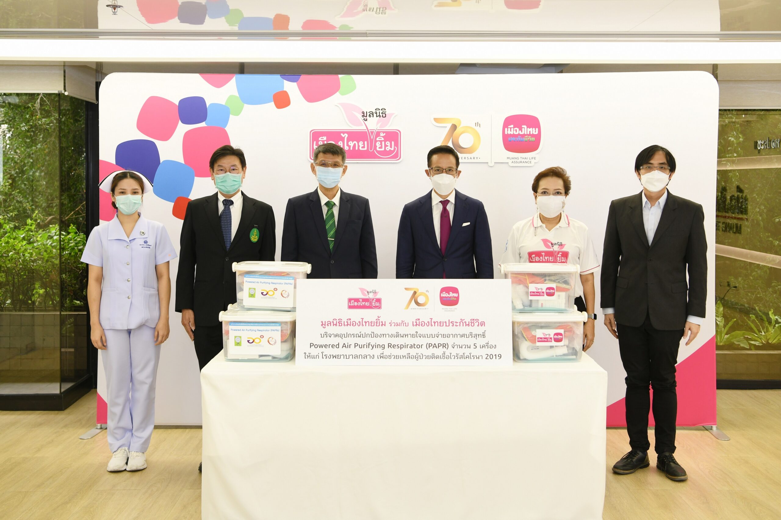 เมืองไทยประกันชีวิต จำกัด (มหาชน) โดยนายสาระ ล่ำซำ ประธานเจ้าหน้าที่บริหาร นายแพทย์วุฒิวงศ์ สมบุญเรืองศรี ผู้ช่วยกรรมการผู้จัดการอาวุโส ร่วมกับมูลนิธิเมืองไทยยิ้ม โดยนางพิตราภรณ์ บุณยรัตพันธุ์ รองประธานกรรมการมูลนิธิเมืองไทยยิ้ม บริจาคอุปกรณ์ปกป้องทางเดินหายใจแบบจ่ายอากาศบริสุทธิ์ Powered Air Purifying Respirator (PAPR) จำนวน 5 เครื่อง ให้กับโรงพยาบาลกลาง เพื่อนำไปเป็นอุปกรณ์ป้องกันให้กับบุคลากรทางการแพทย์ ได้ใช้ประโยชน์ในการรักษาผู้ป่วยวิกฤตติดเชื้อไวรัสโคโรนา 2019 (COVID-19) โดยมีนายแพทย์ เพชรพงษ์ กำจรกิจการ ผู้อำนวยการ โรงพยาบาลกลาง นายแพทย์สมเกียรติ อัศวโรจน์พงษ์ รองผู้อำนวยการ โรงพยาบาลกลาง ฝ่ายการแพทย์ รับมอบ ณ เมืองไทยประกันชีวิต สำนักงานใหญ่