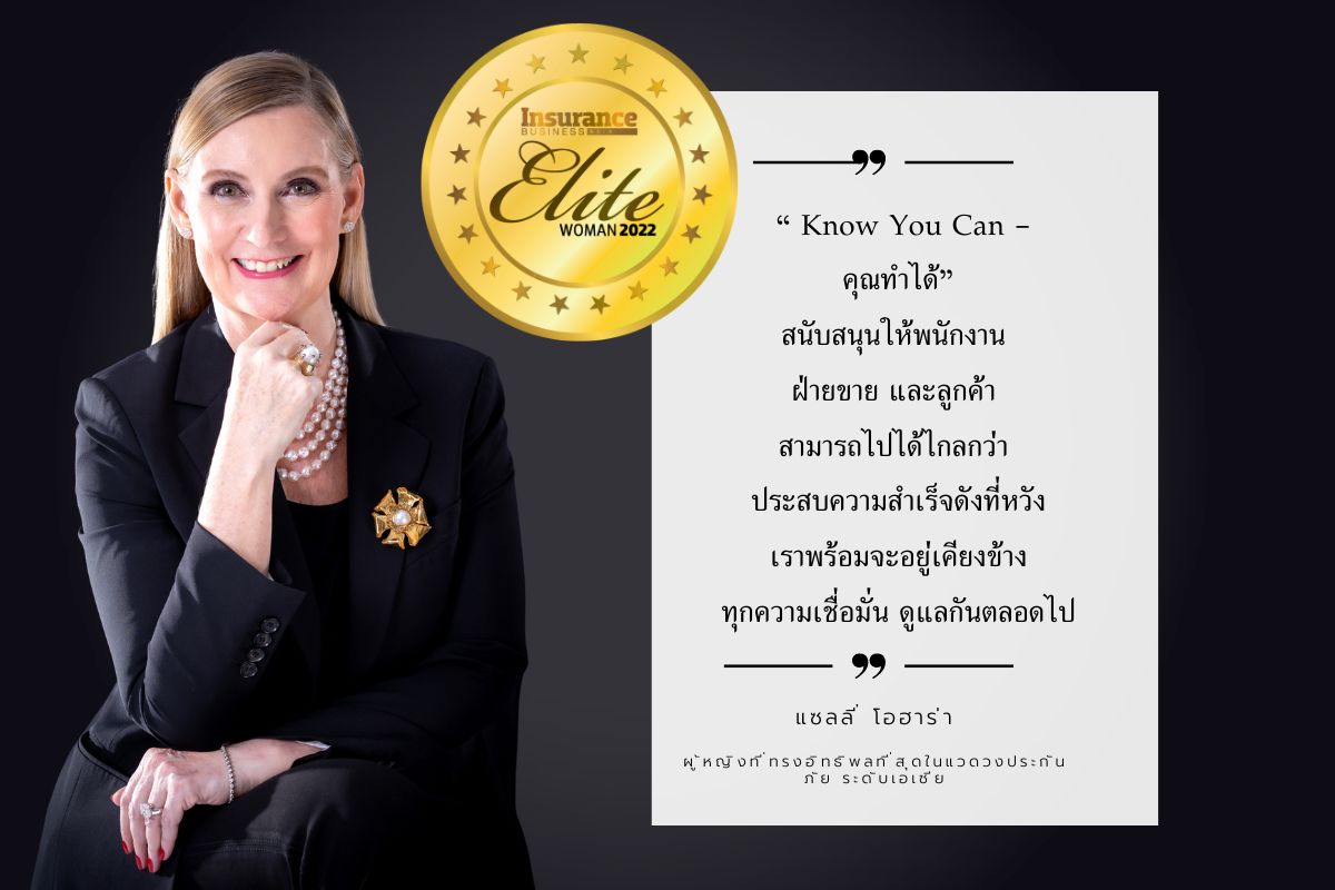 คุณแซลลี่ โอฮาร่า ประธานเจ้าหน้าที่บริหาร บมจ.กรุงไทย-แอกซ่า ประกันชีวิต คว้ารางวัล Elite Woman 2022 ผู้หญิงที่ทรงอิทธิพลที่สุดในแวดวงประกันภัย ระดับเอเซีย จาก Insurance Business Asia รางวัลดังกล่าวมอบให้แก่ผู้หญิงที่มีผลงานโดดเด่น ที่ไม่เพียงแต่ทำเพื่อลูกค้าและองค์กรของตนเองเท่านั้น แต่ยังสนับสนุนความหลากหลายในทุกๆแง่มุมทั้งด้านชุมชน สังคมและอุตสาหกรรม อีกทั้งเป็นตัวแทนของความมุ่งมั่นต่อภารกิจ และสร้างคุณค่าให้กับธุรกิจประกัน โดยรางวัลดังกล่าวถือเป็นอีกหนึ่งความภาคภูมิใจของบริษัทฯ ซึ่งสะท้อนให้เห็นว่าผู้นำสูงสุดของบริษัทฯ เป็นผู้นำที่มีความเชื่อมั่นในตนเอง และตอกย้ำทัศนคติ “Know You Can – คุณทำได้” พร้อมทั้งสนับสนุนให้พนักงาน ฝ่ายขาย และลูกค้าของบริษัทฯ สามารถไปได้ไกลกว่า และประสบความสำเร็จดังที่หวังไว้ ซึ่งพร้อมจะอยู่เคียงข้างทุกความเชื่อมั่น ดูแลกันตลอดไป