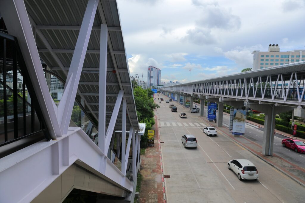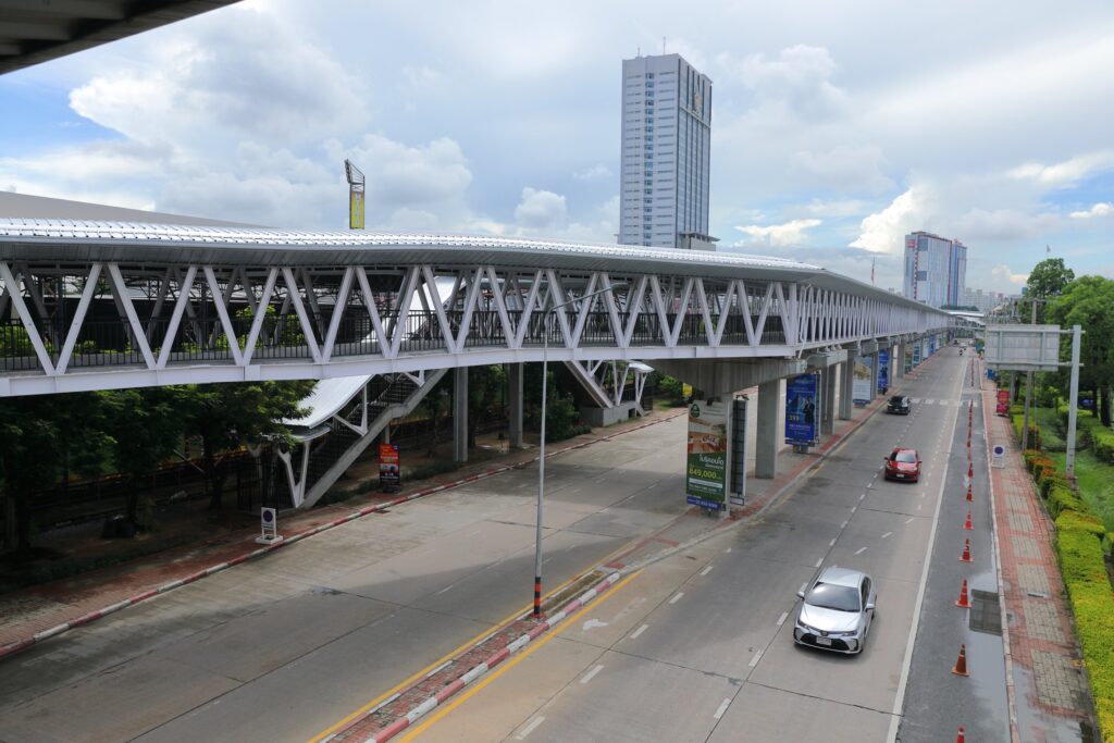 ทั้งนี้ ได้จัดวางทางขึ้นลง มีบันไดเลื่อน 2 จุด เยื้องอาคารธันเดอร์โดม และด้านหน้าสำนักงานตำรวจตรวจคนเข้าเมืองรวมถึงติดตั้งทางเดินเลื่อน จำนวน 2 ตัว ซึ่งในวันที่ 23 ก.ค.นี้ การดำเนินงานแล้วเสร็จ สามารถเปิดให้บริการควบคู่กับโครงการเฟส 1 ระยะทาง 290 เมตร จากโรงแรมไอบิสถึงอาคาร 12 และเฟส 2 ระยะทาง 336 จากวงเวียนไอบิสถึงคอสโมวอล์ค เชื่อมต่อคอสโม บาซาร์