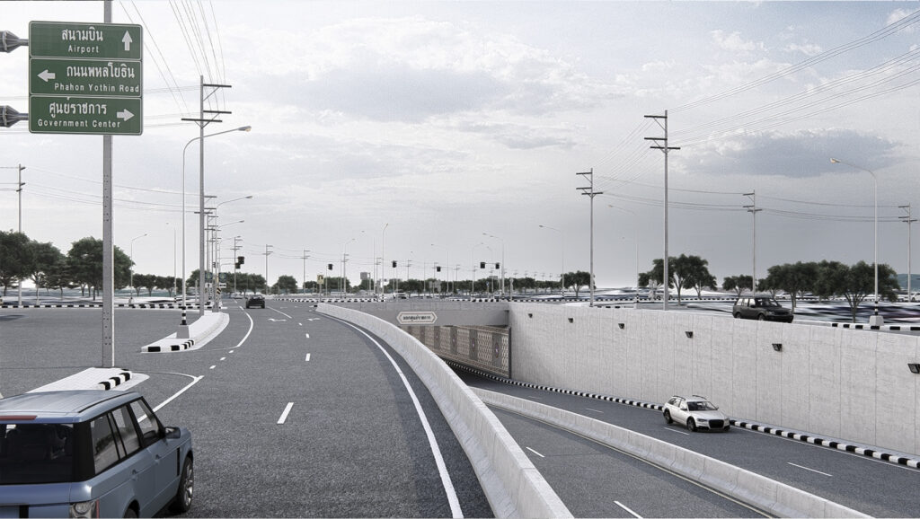 โดยจะก่อสร้างเป็นอุโมงค์ลอดทางแยก มีขนาด 4 ช่องจราจรไป – กลับ ความยาว 425.50 เมตร พร้อมงานปรับปรุงขยายสะพานข้ามแม่น้ำกก ให้มีช่องจราจรกว้างขึ้นตลอดความยาว 410 เมตร และงานปรับปรุงถนนบริเวณแยกศูนย์ราชการบนถนนทางหลวงชนบทสาย ชร.1023 รวมไปถึงการติดตั้งระบบไฟฟ้าแสงสว่าง และสาธารณูปโภคอื่น ๆ รวมระยะทางดำเนินการทั้งสิ้น 1.635 กิโลเมตร (กม.) ใช้งบประมาณในการก่อสร้าง 849.8 ล้านบาท