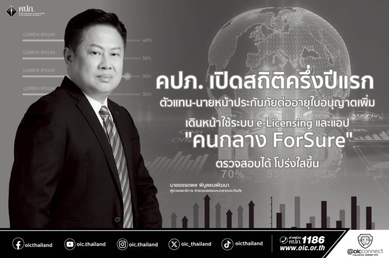 คปภ. เปิดสถิติครึ่งปีแรก ตัวแทน-นายหน้าประกันภัยต่ออายุใบอนุญาตเพิ่ม เดินหน้าใช้ระบบ e-Licensing และแอป “คนกลาง ForSure” ตรวจสอบได้ โปร่งใสขึ้น