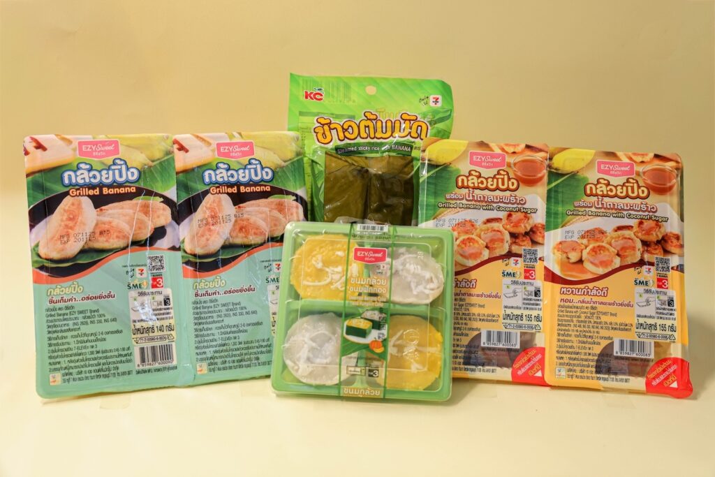 นอกจากกล้วยสดที่ขายดีติดอันดับต้นๆ ของร้านเซเว่นฯ แล้ว ยังต่อยอดสร้างมูลค่าเพิ่มให้ “กล้วยไทย” ผ่านผลิตภัณฑ์แปรรูปสุดสร้างสรรค์จากขนมไทยโบราณ เช่น กล้วยปิ้ง กล้วยปิ้งพร้อมน้ำตาลมะพร้าว ขนมกล้วย และข้าวต้มมัด ที่เกิดจากการร่วมพัฒนากับผู้ประกอบการคู่ค้าของเซเว่น อีเลฟเว่น อย่าง “แม่ซู่กี๊ขนมไทย” และ “เคซี” โดยขนมได้รับการตอบรับดีจากผู้บริโภค เป็นอีกหนึ่งตัวอย่างของความสำเร็จจากการผสาน “ภูมิปัญญาท้องถิ่น” เข้ากับ “โอกาสทางการตลาดสมัยใหม่