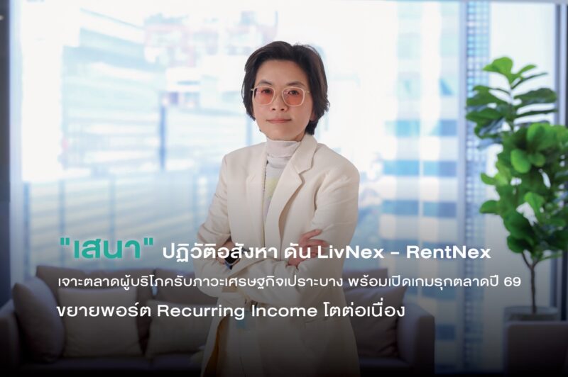 “เสนา” ปฏิวัติอสังหา ดัน LivNex – RentNex เจาะตลาดผู้บริโภครับภาวะเศรษฐกิจเปราะบาง พร้อมเปิดเกมรุกตลาดปี 69 ขยายพอร์ต Recurring Income โตต่อเนื่อง