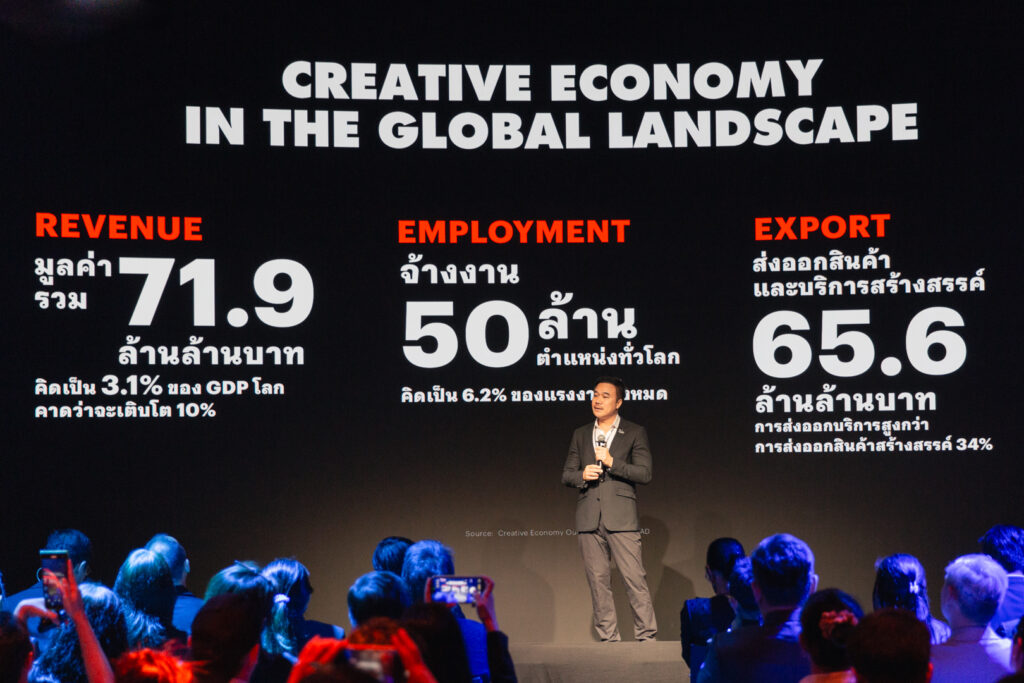 ดร. ชาคริต พิชญางกูร ผู้อำนวยการสำนักงานส่งเสริมเศรษฐกิจสร้างสรรค์ ขึ้นกล่าวในช่วง Creative Economy Strategic Direction 2026 ขยายภาพความสำคัญของอุตสาหกรรมสร้างสรรค์ไทย โดยระบุว่าปัจจุบันมูลค่าของอุตสาหกรรมสร้างสรรค์ไทย (GVA) นั้นสูงถึง 1.44 ล้านล้านบาท คิดเป็นสัดส่วน 8.01% ของผลิตภัณฑ์มวลรวมประเทศ (GDP) และเป็นอุตสาหกรรมที่มีความสามารถในการฟื้นตัวได้เร็วกว่าและสูงกว่าภาพรวมเศรษฐกิจเมื่อเกิดวิกฤต ทั้งยังช่วยสร้างมูลค่าการส่งออกได้ถึง 3.91 แสนล้านบาท และสร้างตำแหน่งงานให้ประเทศโดยมีผู้ประกอบอาชีพนักสร้างสรรค์อยู่ถึง 9.8 แสนคนในไทย ดังนั้น อุตสาหกรรมสร้างสรรค์จึงไม่ใช่อุตสาหกรรมเสริม แต่เป็นกลไกขับเคลื่อนเศรษฐกิจที่ควรได้รับการสนับสนุน