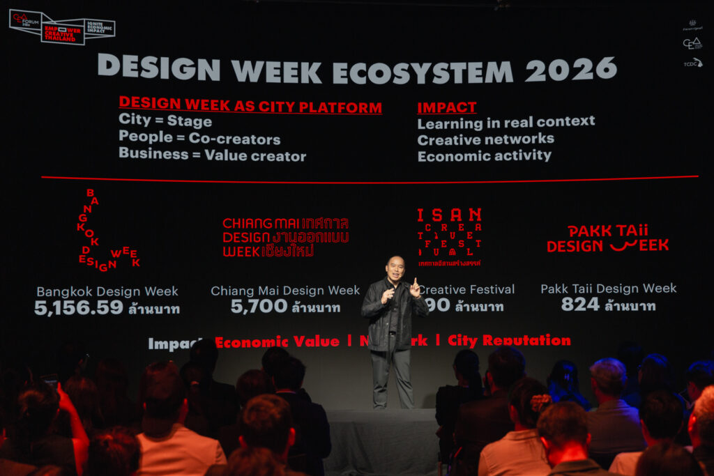 นายอินทพันธุ์ บัวเขียว รองผู้อำนวยการสำนักงานส่งเสริมเศรษฐกิจสร้างสรรค์ ขึ้นกล่าวต่อในช่วง Creative Industry Development นำเสนอแผนการเพิ่มขีดความสามารถการแข่งขันให้อุตสาหกรรมสร้างสรรค์ไทย ทั้งในกลุ่มคอนเทนต์ ดนตรี โฆษณา สถาปัตยกรรม การออกแบบ และสินค้าและบริการสร้างสรรค์ โดยปีนี้ยังคงโฟกัสที่คอนเทนต์ (ภาพยนตร์ ซีรีส์ และแอนิเมชัน) และดนตรีอย่างต่อเนื่อง เช่น โครงการ Content Lab 2026 ที่จัดขึ้นต่อเนื่องเป็นปีที่ 4 เพื่อพัฒนาทักษะและยกระดับศักยภาพโปรเจ็กต์ของนักสร้างสรรค์สายภาพยนตร์ ซีรีส์ และแอนิเมชัน พร้อมกันนี้ CEA ยังร่วมจัดงาน “Thailand International Content IP Expo (TICIP)” กับกรมทรัพย์สินทางปัญญา (DIP) และกรมส่งเสริมการค้าระหว่างประเทศ (DITP) เพื่อเปิดตลาดซื้อขายโปรเจ็กต์คอนเทนต์ระดับนานาชาติ และสร้างตลาดซื้อขาย IP คอนเทนต์ที่ใหญ่ที่สุดในไทย ช่วงเดือนกรกฎาคม 2569