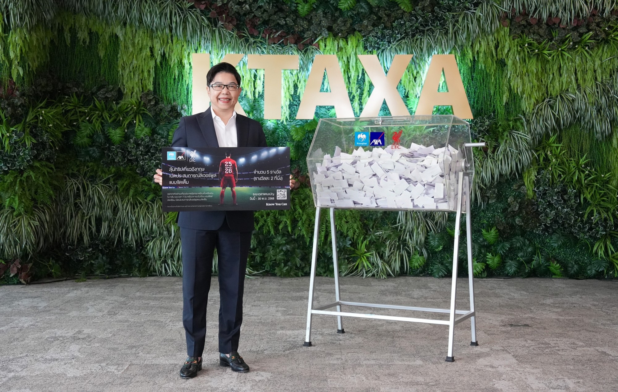 บมจ.กรุงไทย-แอกซ่า ประกันชีวิต นำโดย คุณบุปผาวดี โอวรารินท์ ประธานเจ้าหน้าที่บริหาร ฝ่ายการตลาด จับรายชื่อผู้โชคดีของแคมเปญ “ลุ้นทริปเที่ยวอังกฤษ เปิดประสบการณ์ลิเวอร์พูลแบบจัดเต็มกับ กรุงไทย-แอกซ่า ประกันชีวิต” ประจำปี 2568 ให้แก่ลูกค้าที่ซื้อผลิตภัณฑ์ภายใต้เงื่อนไขแคมเปญของ กรุงไทย-แอกซ่า ประกันชีวิต จำนวน 5 รางวัล (รางวัลละ 2 ที่นั่ง) มูลค่ารางวัลละ 450,000 บาท โดยผู้โชคดีจะได้รับแพคเกจท่องเที่ยวที่ประเทศอังกฤษ พร้อมรับชมฟุตบอลทีมลิเวอร์พูล ณ แอนฟิลด์ สเตเดียม เมืองลิเวอร์พูล ทั้งนี้บริษัทฯ ได้ประกาศรายชื่อผู้โชคดีผ่านทาง https://www.krungthai-axa.co.th/th/lfc-customer-trip-2025