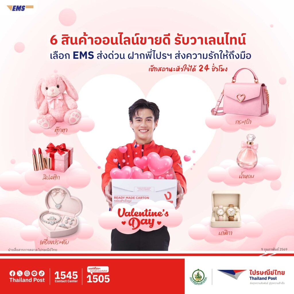 ไปรษณีย์ไทยหนุน EMS ส่งด่วนทั่วไทย ทั่วโลก ส่งของแทนใจถึงมือคนพิเศษ เชื่อมความรักทุกนิยาม รับเทศกาลวาเลนไทน์นี้