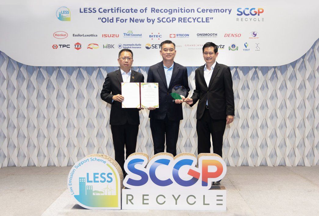 บริษัท กรุงเทพประกันภัย จำกัด (มหาชน) โดยนายพิสิฐ คิดเจริญสุข (กลาง) รองผู้อำนวยการอาวุโส ฝ่ายสินไหมทดแทนยานยนต์ เป็นผู้แทนบริษัทฯ รับมอบโล่พร้อมใบประกาศเกียรติคุณ โครงการสนับสนุนกิจกรรมลดก๊าซเรือนกระจก (Low Emission Support Scheme: LESS) ภายใต้โครงการ “Old For New โดย SCGP RECYCLE” ในพิธีมอบใบประกาศเกียรติคุณภายใต้โครงการสนับสนุนกิจกรรมลดก๊าซเรือนกระจก ซึ่งได้รับเกียรติจากนายณกรณ์ ตรรกวิรพัท​​ (ซ้าย) ผู้อำนวยการองค์การบริหารจัดการก๊าซเรือนกระจก (องค์การมหาชน) และนายดนัยเดช เกตุสุวรรณ (ขวา) ประธานเจ้าหน้าที่บริหารสายการเงิน บริษัท เอสซีจี แพคเกจจิ้ง จำกัด (มหาชน) เป็นผู้มอบ ณ อาคารอเนกประสงค์ สำนักงานใหญ่ SCG บางซื่อ กรุงเทพฯ เมื่อวันที่ 25 กุมภาพันธ์ 2569