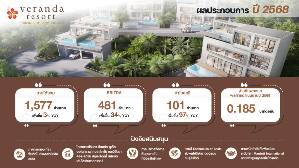 VRANDA กำไรปี 68 โตเกือบเท่าตัว แตะ 101 ลบ. จ่อปันผล 0.185 บ./หุ้น รับอานิสงส์ท่องเที่ยวฟื้น เดินหน้ารุกภูเก็ต-สมุย ปี 69 สดใส!