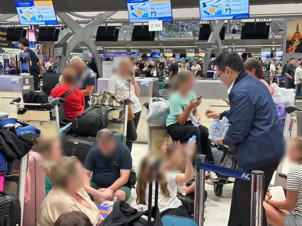นอกจากนี้ ได้จัดเจ้าหน้าที่ประชาสัมพันธ์และ Airport Ambassadors ลงพื้นที่ดูแลผู้โดยสารอย่างใกล้ชิด มีการประสานงานกับสำนักงานตรวจคนเข้าเมืองและสายการบินเพื่อดูแลผู้โดยสารที่ตกค้าง จัดเตรียมน้ำดื่ม เพิ่มพื้นที่พักคอย จัดสรรเคาน์เตอร์เช็กอินเพิ่มเติม และติดตามสถานการณ์เที่ยวบินแบบเรียลไทม์ รวมถึงเพิ่มมาตรการรักษาความปลอดภัยเข้มงวดตลอด 24 ชั่วโมง