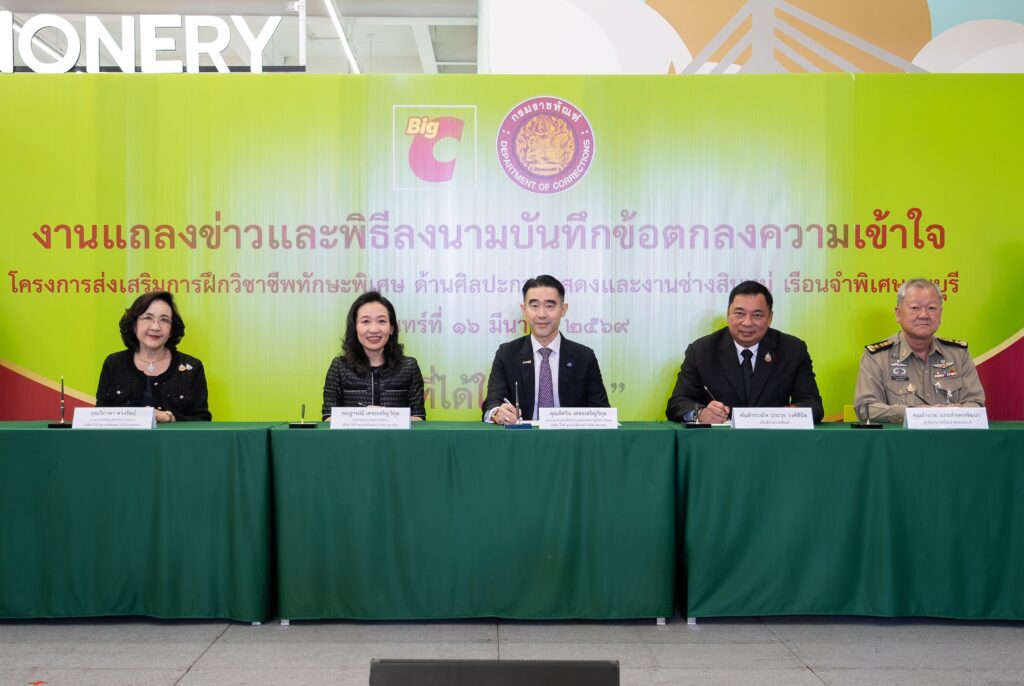 บริษัท บิ๊กซี ซูเปอร์เซ็นเตอร์ จำกัด (มหาชน) หรือ บิ๊กซี ร่วมกับ กรมราชทัณฑ์ ลงนามบันทึกข้อตกลงความร่วมมือ (MOU) “โครงการส่งเสริมการฝึกวิชาชีพทักษะพิเศษ ด้านศิลปะการแสดง และงานช่างสิบหมู่” เพื่อพัฒนาทักษะอาชีพให้ผู้ต้องขัง และสร้างโอกาสในการเริ่มต้นชีวิตใหม่ก่อนกลับคืนสู่สังคม พร้อมเปิดพื้นที่ค้าปลีกสำหรับจัดแสดงและจำหน่ายผลงานศิลปกรรมจากการฝึกอบรม โดยพิธีลงนามจัดขึ้น ณ บิ๊กซี สาขาราชดำริ ชั้น 3 โดยมี นายอัศวิน เตชะเจริญวิกุล ประธานเจ้าหน้าที่บริหารและกรรมการผู้จัดการใหญ่ และ นางฐาปณี เตชะเจริญวิกุล รองประธานกรรมการบริหาร บริษัท บิ๊กซี ซูเปอร์เซ็นเตอร์ จำกัด (มหาชน) ร่วมลงนามกับ พันตำรวจโท ประวุธ วงศ์สีนิล อธิบดีกรมราชทัณฑ์ และ นายอำนวย เปรมกิจพรพัฒนา ผู้บัญชาการเรือนจำพิเศษธนบุรี