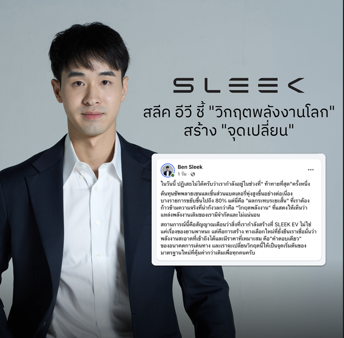 สลีค อีวี (SLEEK EV) มองเห็นสัญญาณการปรับเปลี่ยนครั้งใหญ่ มุ่งเป้าแก้ปัญหาการพึ่งพาระบบพลังงานที่ควบคุมไม่ได้ ท่ามกลางความผันผวนของราคาน้ำมันที่ปรับตัวสูงขึ้นอย่างต่อเนื่องจากสถานการณ์ความขัดแย้งระหว่างประเทศ ดัน ‘โอกาส’ มอเตอร์ไซค์อีวี สร้างความยั่งยืนทั่วประเทศ
