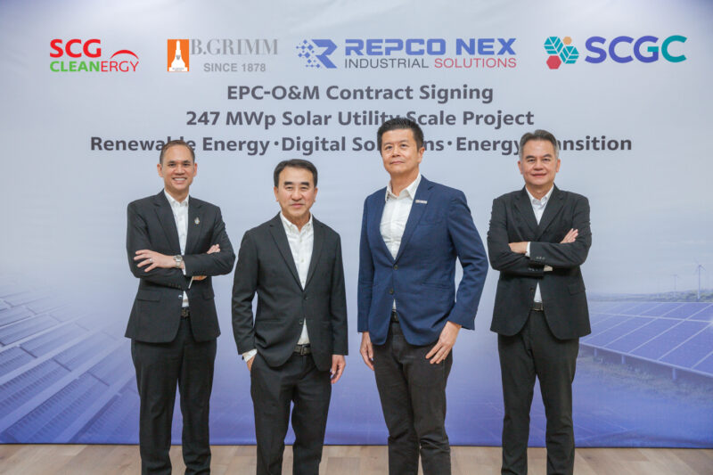 บริษัท เร็ปโก เน็กซ์ จำกัด (REPCO NEX) ในกลุ่มธุรกิจเอสซีจี เคมิคอลส์ (SCGC) ร่วมกับ บริษัท บี.กริม เพาเวอร์ จำกัด (มหาชน) (B.Grimm Power) และบริษัท เอสซีจี คลีนเนอร์ยี่ จำกัด (SCG Cleanergy) ผนึกกำลังยกระดับโครงสร้างพื้นฐานด้านพลังงาน มุ่งขยายสัดส่วนการใช้พลังงานสะอาด ลดใช้พลังงานจากน้ำมัน พร้อมขับเคลื่อนประเทศไทยสู่สังคมคาร์บอนต่ำอย่างยั่งยืน ล่าสุด ได้ลงนามความร่วมมือ “โครงการโรงไฟฟ้าพลังงานแสงอาทิตย์ขนาดใหญ่ (Solar Utility Scale) ขนาด 247 เมกะวัตต์” สามารถผลิตพลังงานไฟฟ้าได้เพียงพอต่อการใช้งานประมาณ 100,000 ครัวเรือน ในจังหวัดกำแพงเพชร นครสวรรค์ และสระบุรี ตั้งเป้าเปิดดำเนินการเชิงพาณิชย์ภายในปี 2570 ซึ่งจะช่วยลดการปล่อยก๊าซเรือนกระจกได้สูงสุดประมาณ 200,000 ตันคาร์บอนไดออกไซด์เทียบเท่าต่อปี (tCO2e) หรือเทียบเท่าการปลูกต้นไม้กว่า 2,785 ต้น