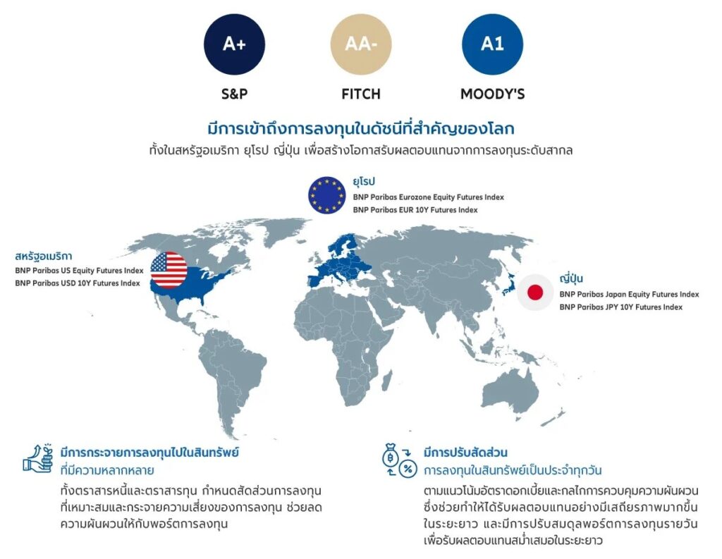 - ต่อยอดเงินออมให้เติบโตตามภาวะตลาดโลกที่มีความผันผวน พร้อมสร้างความมั่นคงด้านความคุ้มครองชีวิตในระยะยาว