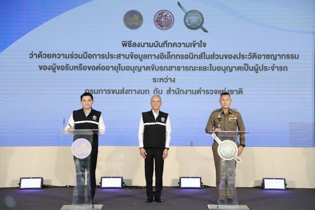ในส่วนของความร่วมมือการประสานข้อมูลทางอิเล็กทรอนิกส์ในส่วนของประวัติอาชญากรรมของผู้ขอรับหรือขอต่ออายุใบอนุญาตขับรถสาธารณะและใบอนุญาตเป็นผู้ประจำรถ ระหว่าง ขบ. กับ สตช. ในครั้งนี้ ได้มีการปรับเปลี่ยนกระบวนการตรวจสอบประวัติอาชญากรรมของผู้ที่ขอรับหรือขอต่ออายุใบอนุญาตขับรถสาธารณะและใบอนุญาตเป็นผู้ประจำรถจากเดิมต้องมาที่ ขบ. เพื่อขอทำใบอนุญาตขับรถสาธารณะแล้ว จึงส่งตัวบุคคลไปตรวจสอบประวัติอาชญากรรมที่ สตช. ซึ่งต้องใช้หนังสือนำส่งและต้องใช้เวลาในการเดินทางไปตรวจสอบประวัติอาชญากรรม เปลี่ยนเป็นตรวจสอบผ่านระบบฐานข้อมูลอิเล็กทรอนิกส์โดยตรง โดยไม่ต้องมีหนังสือนำส่งจาก ขบ. ทั้งในกรณีผู้ขอรับใบอนุญาตขับรถสาธารณะ (ขอใหม่) ที่ต้องตรวจสอบประวัติเพื่อพิมพ์ลายนิ้วมือ และกรณีผู้ขอต่ออายุใบอนุญาตขับรถสาธารณะ ที่ต้องตรวจสอบประวัติโดยไม่ต้องพิมพ์ลายนิ้วมือ