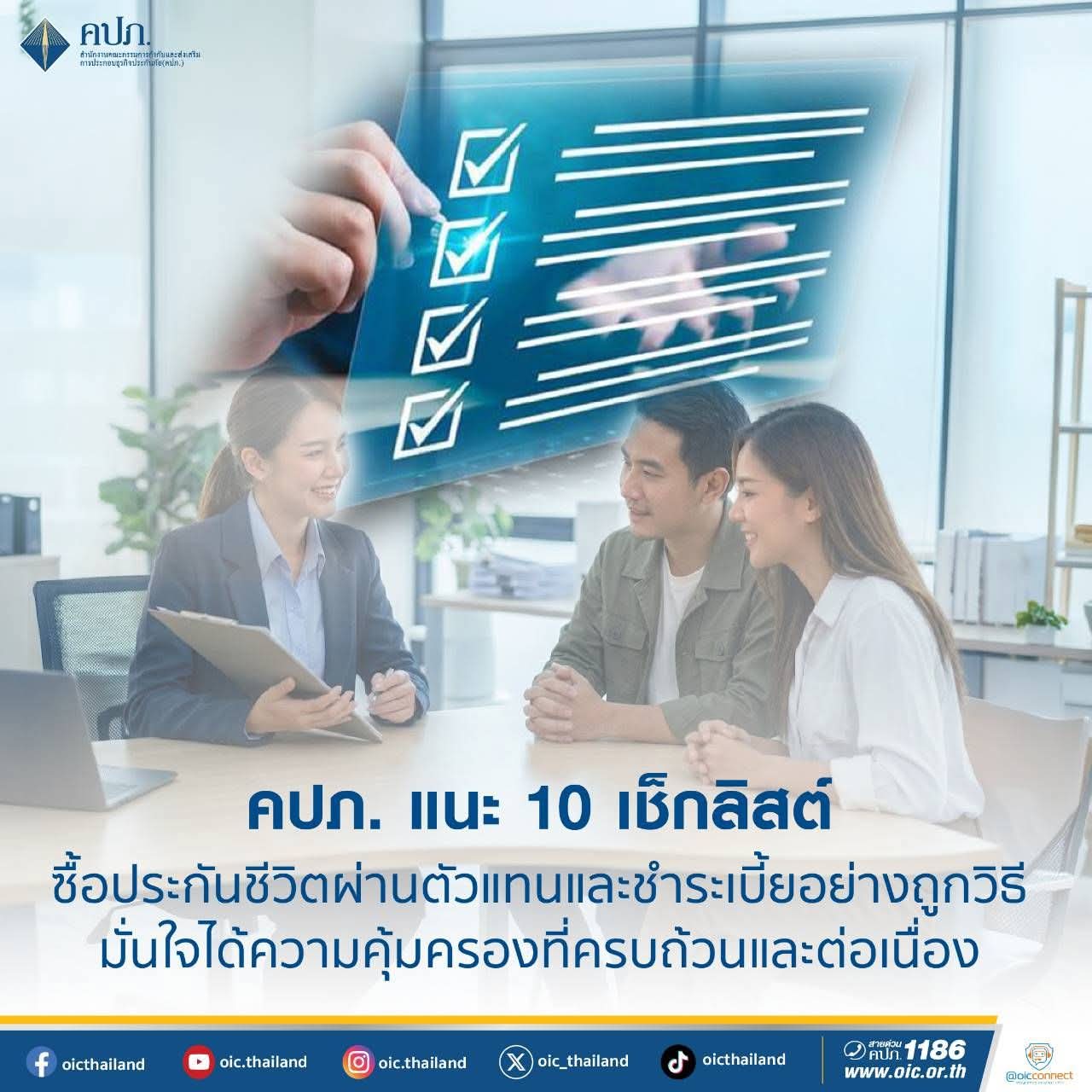 คปภ. แนะ 10 เช็กลิสต์ ซื้อประกันชีวิตผ่านตัวแทนและชำระเบี้ยอย่างถูกวิธี มั่นใจได้ความคุ้มครองที่ครบถ้วนและต่อเนื่อง