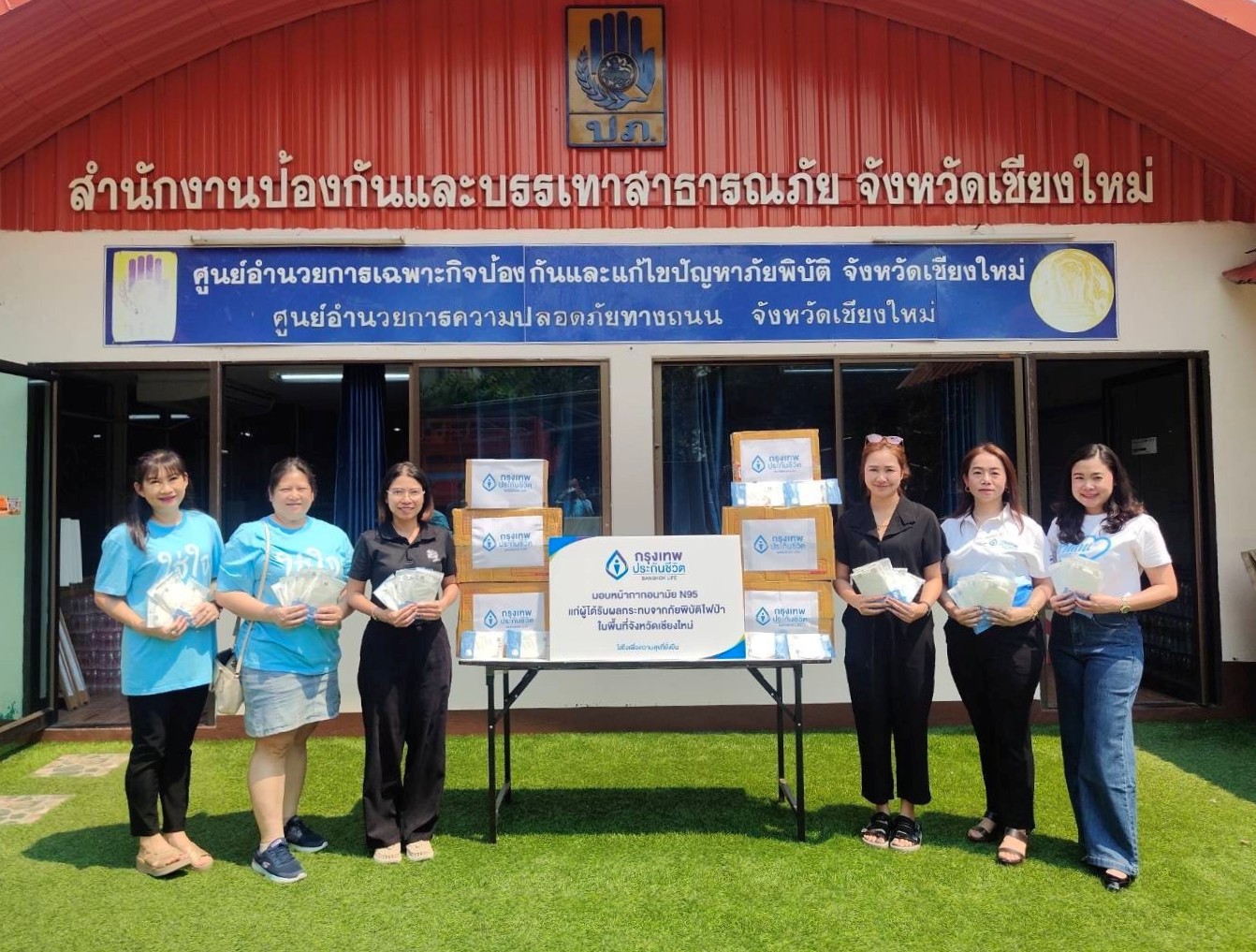 บริษัท กรุงเทพประกันชีวิต จำกัด (มหาชน) เดินหน้าสานต่อพันธกิจองค์กร ส่งมอบความใส่ใจ และห่วงใยแก่ผู้ได้รับผลกระทบจากภัยพิบัติไฟป่า โดยพนักงานและตัวแทนประกันชีวิตในพื้นที่จังหวัดเชียงใหม่ เป็นตัวแทนมอบหน้ากากอนามัยมาตรฐาน N95 จำนวน 1,000 ชิ้น ให้แก่สำนักงานป้องกันและบรรเทาสาธารณภัย จังหวัดเชียงใหม่ (ปภ.) เพื่อเร่งกระจายความช่วยเหลือแก่เจ้าหน้าที่อาสาดับไฟป่า และบรรเทาความเดือดร้อนของประชาชนกลุ่มเปราะบางที่ต้องเผชิญกับค่าฝุ่นละอองขนาดเล็ก PM 2.5 ที่สูงเกินค่ามาตรฐาน ซึ่งส่งผลกระทบโดยตรงต่อระบบทางเดินหายใจและสุขภาพในระยะยาว ณ สำนักงานป้องกันและบรรเทาสาธารณภัย จังหวัดเชียงใหม่