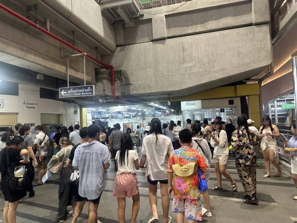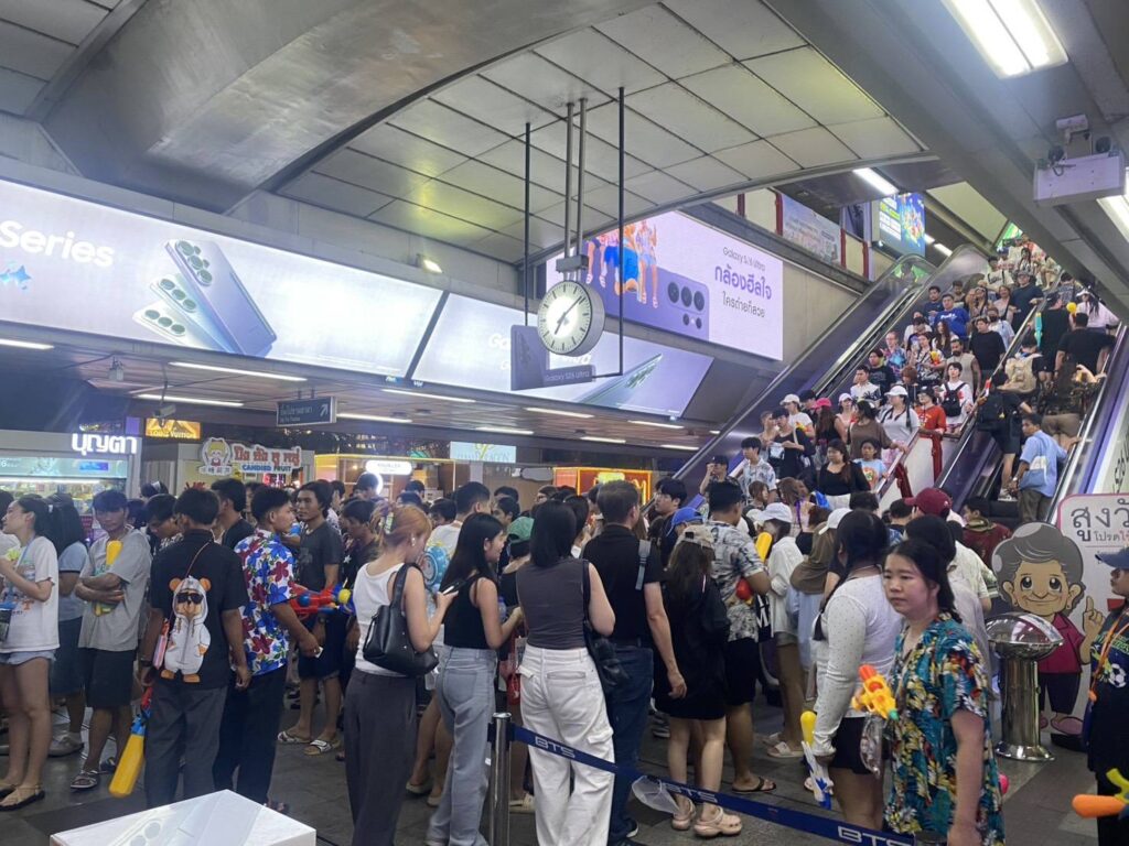 ขณะที่ ระบบรถไฟฟ้า มีผู้ใช้บริการรวม 967,046 คน-เที่ยว สูงกว่าประมาณการ 6.58% บรรยากาศตามสถานีต่าง ๆ มีผู้ใช้บริการหนาแน่นจาก 2 ปัจจัยหลัก คือ กลุ่มประชาชนที่เดินทางกลับจากต่างจังหวัดและใช้ระบบรถไฟฟ้าเป็น Feeder เพื่อเดินทางกลับที่พัก และกลุ่มประชาชน/นักท่องเที่ยวที่เดินทางไปร่วมงานสงกรานต์วันสุดท้ายของเทศกาลตามแลนด์มาร์กสำคัญ ทำให้ระบบรถไฟฟ้ามีผู้ใช้บริการเป็นจำนวนมาก โดยมีข้อมูลแต่ละสาย ดังนี้