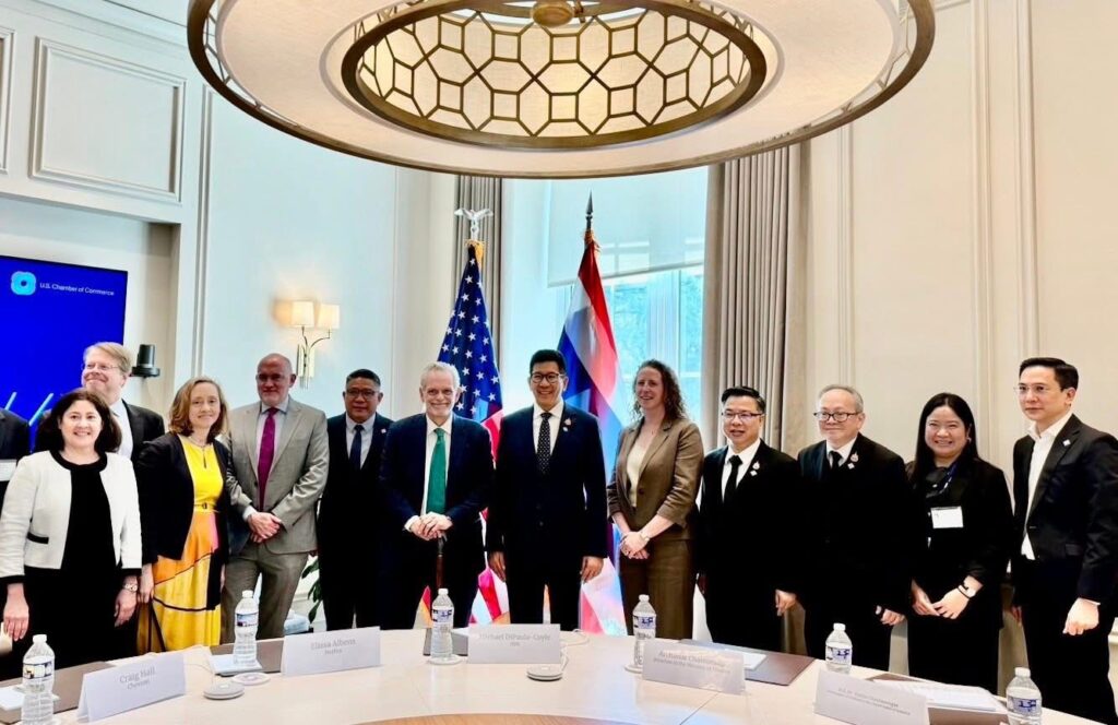นอกจากนี้ คณะยังได้เข้าหารือกับหอการค้าสหรัฐฯ (U.S. Chamber of Commerce: USCC) โดยแลกเปลี่ยนมุมมองกับผู้บริหารบริษัทชั้นนำ อาทิ Dow Chemical, Chevron, Netflix, PepsiCo, Visa และ IBM ซึ่งต่างมีฐานการดำเนินงานในประเทศไทย การหารือครั้งนี้มีนัยสำคัญเชิงนโยบาย ภาคเอกชนสหรัฐฯ ยืนยันตรงกันว่า ไทยมิใช่เป็นเพียงฐานการผลิตเพื่อส่งออกกลับสหรัฐฯ แต่ทำหน้าที่เป็นศูนย์กลางการดำเนินธุรกิจระดับภูมิภาค สะท้อนความสำคัญเชิงยุทธศาสตร์ของไทยในห่วงโซ่มูลค่าของบริษัทอเมริกันในเอเชีย โดยรองนายกฯ ได้นำเสนอวาระปฏิรูปเศรษฐกิจของรัฐบาลชุดใหม่ ซึ่งให้ความสำคัญกับการขจัดอุปสรรคการลงทุน การพัฒนาระบบศุลกากรด้วยเทคโนโลยีดิจิทัล และการพัฒนาทักษะบุคลากรร่วมกับภาคเอกชนผ่านมาตรการของบีโอไอ