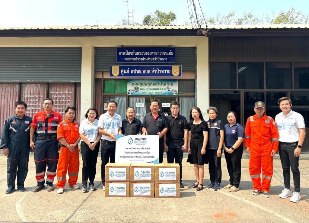‘กรุงเทพประกันชีวิต’ ตอกย้ำพันธกิจ “ใส่ใจ” ส่งมอบหน้ากาก N95 จำนวน 5,000 ชิ้น ช่วยเหลือผู้ประสบภัยไฟป่า หมอกควัน PM2.5 ภาคเหนือ 7 จังหวัด